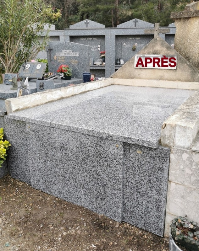 HOMMAGE Funéraire intervient pour la remise en état des monuments funéraires et pierres tombales, en pierre ou en granit (réparations, redressement de monuments funéraires, réparation de stèles funéraires ou encore d'articles funéraires..).