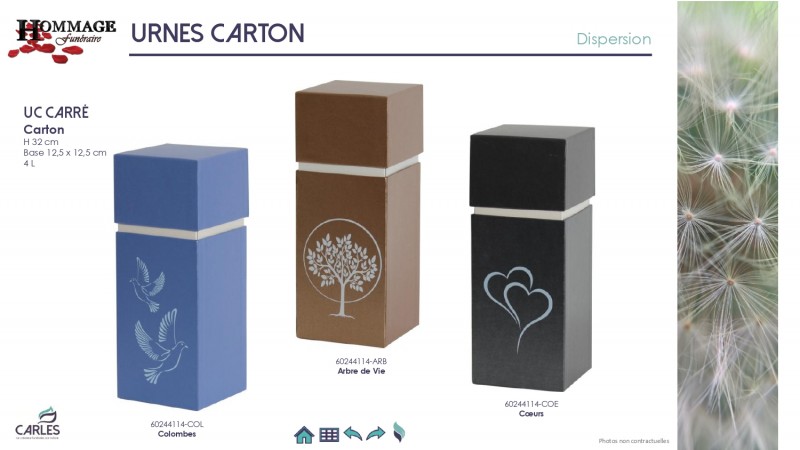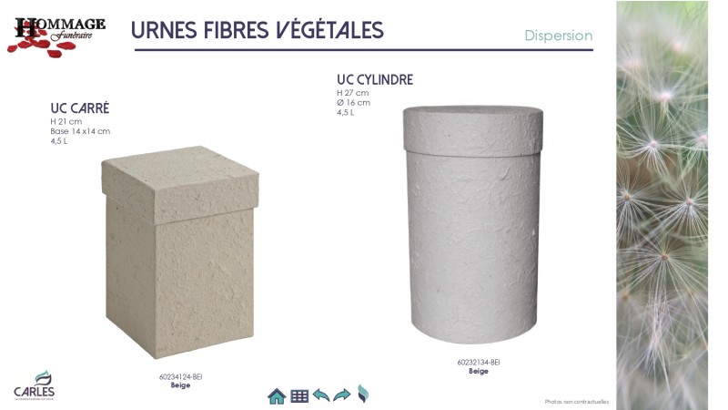 Les Pompes funèbres HOMMAGE Funéraire vous propose un large choix d'urnes funéraires en carton et fibres végétales